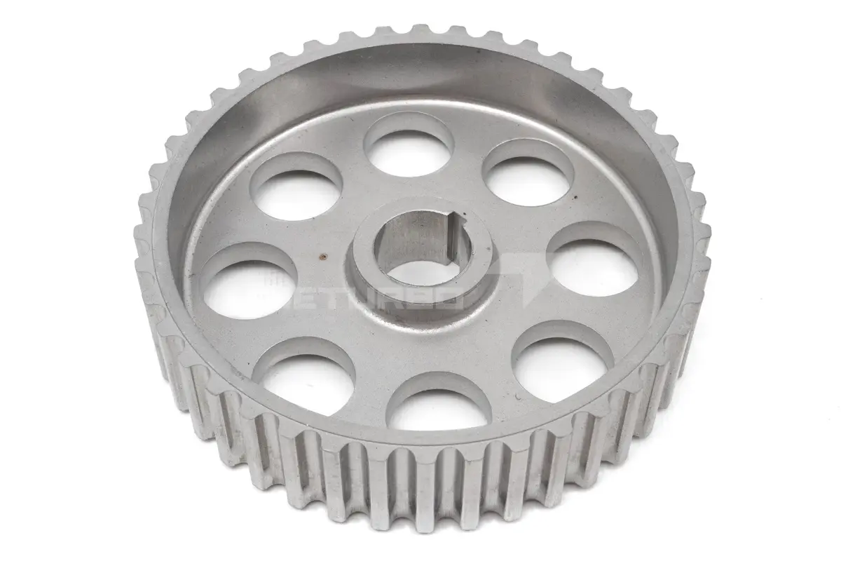 Шкив распредвала - это деталь привода газораспределительного механизма двигателя. Это зубчатый шкив, который вращается зубчатым шкивом коленвала через зубчатый ремень.