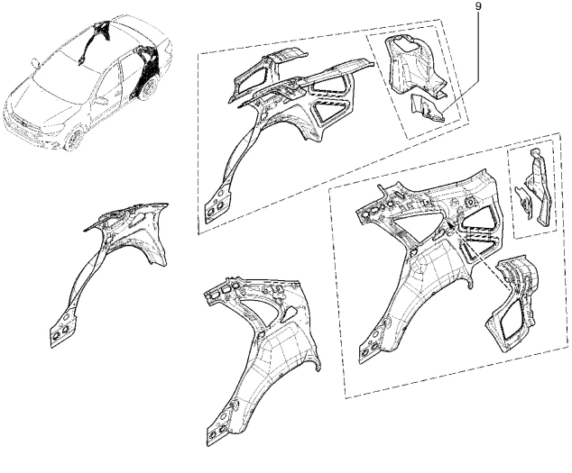 Панель задка угловая внутренняя АвтоВАЗ правая для Лада Гранта, Гранта FL