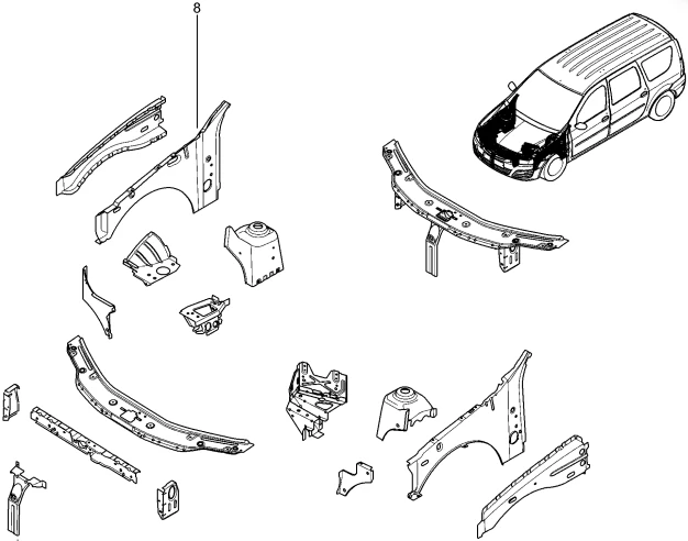 Панель брызговика внутренняя правая Renault для Лада Ларгус