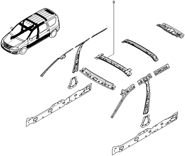 В комплекте: 1 поперечина крыши средняя.Применяется для автомобиля