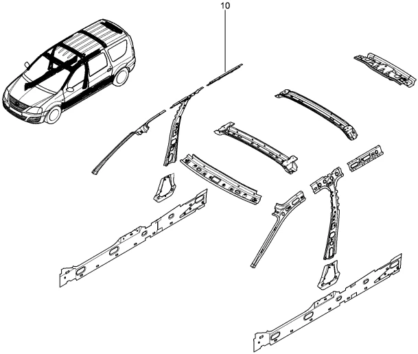 Профиль крыши продольный внутренний Renault задний правый для Лада Ларгус