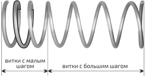 Для пружин с переменным шагом навивки прутка оплетка устанавливается со стороны частых витков, при этом длина оплетки равна длине одного витка пружины. Для большей защиты можно установить еще одну оплетку на третий виток со стороны частых витков.