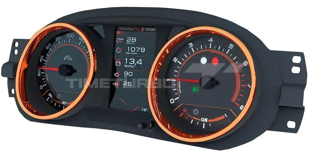 Электронная комбинация приборов Ferrum Group GF 890 для Лада Ларгус, Nissan Almera, Terrano III, Renault Duster PH1, Duster Diesel PH1, Logan I, Sandero I, Sandero Stepway I Кольца Hot Fire