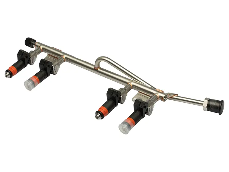 Топливная рампа – часть впускного коллектора, в которой происходит смешивание бензина с газом в пропорции 1 к 15 (увеличение, либо уменьшение количества газа можно настроить вручную, однако оптимальный расход бензина наблюдается именно при вышеуказанном соотношении). Далее смесь подается в форсунки, после которых попадает в камеры сгорания.