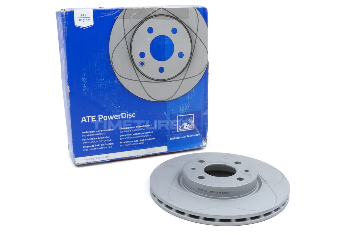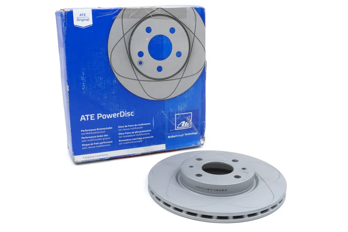 АТЕ POWER - диск стал новшеством мирового значения в области тормозных дисков. Бесконечный многофункциональный желоб собирает воду, которая может задерживаться между тормозным диском и колодкой, и надежно отводит ее. Неравномерно стертые тормозные диски склонны при торможении вызывать биение. Особенно в интервале между 90 и 130 км/час. АТЕ POWER-диск в полной мере проявляет свои преимущества перед обычными тормозными дисками и значительно улучшает комфорт при торможении. Многофункциональный желоб позволяет также теперь с первого взгляда объективно судить о состоянии тормозного диска. Если желоб полностью стерся, то тормозной диск достиг своей минимальной толщины, и его необходимо заменить.