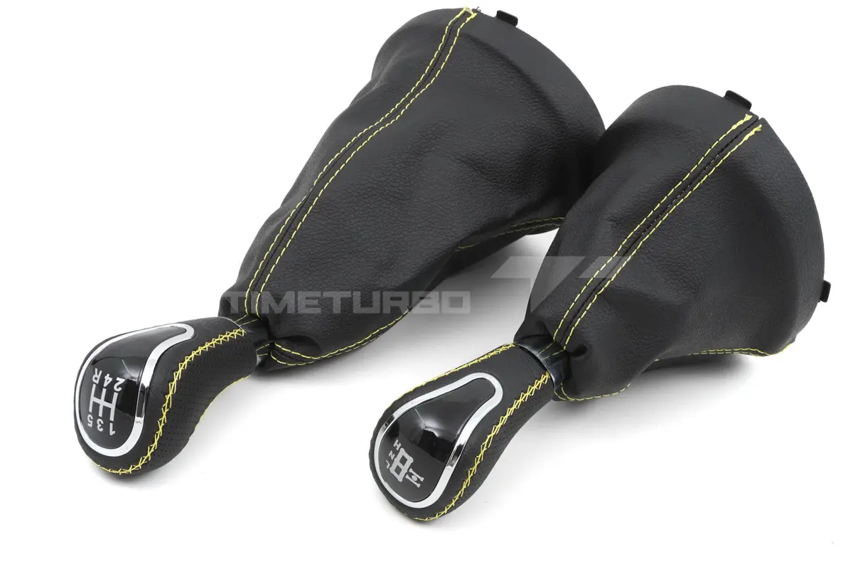 Ручки КПП и раздатки в стиле Веста с чехлами для Шевроле Нива Жёлтая нить, Хром окантовка