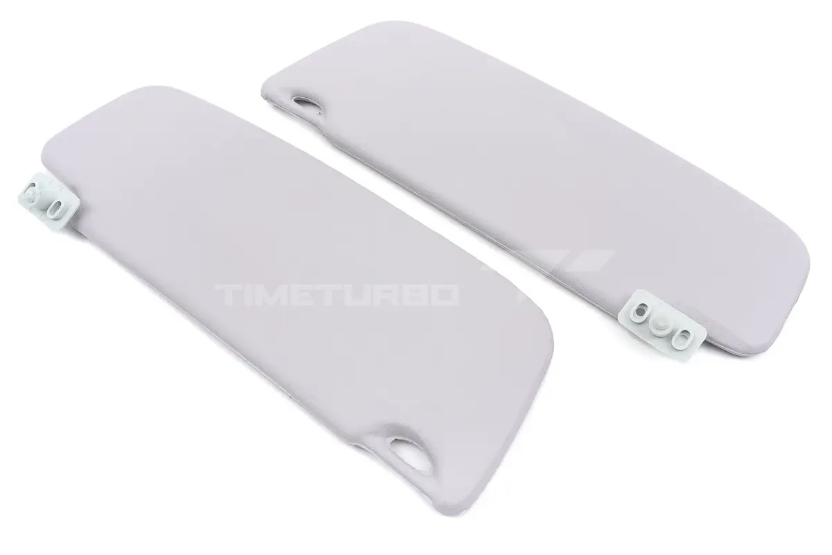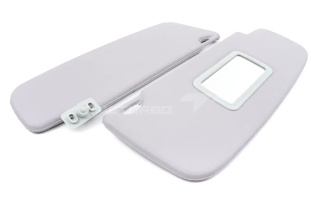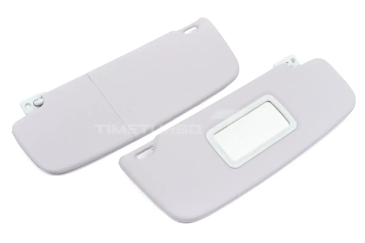 Комплект козырьков предназначен для замены вышедших из строя штатных. Оснащены зеркалом в пассажирском козырьке. Крепление заводское. Установка осуществляется с помощью крепления кронштейнов козырьков на шурупы, в установленные отверстия потолка автомобиля. Работают в двух режимах как в стандартном открытии сверху вниз, так и отсоединяются во внутренней части, чтобы отогнуть козырек в боковую сторону по горизонтали.