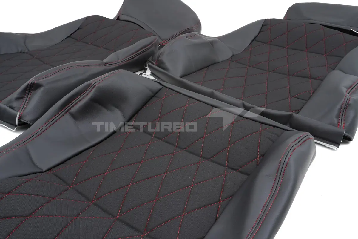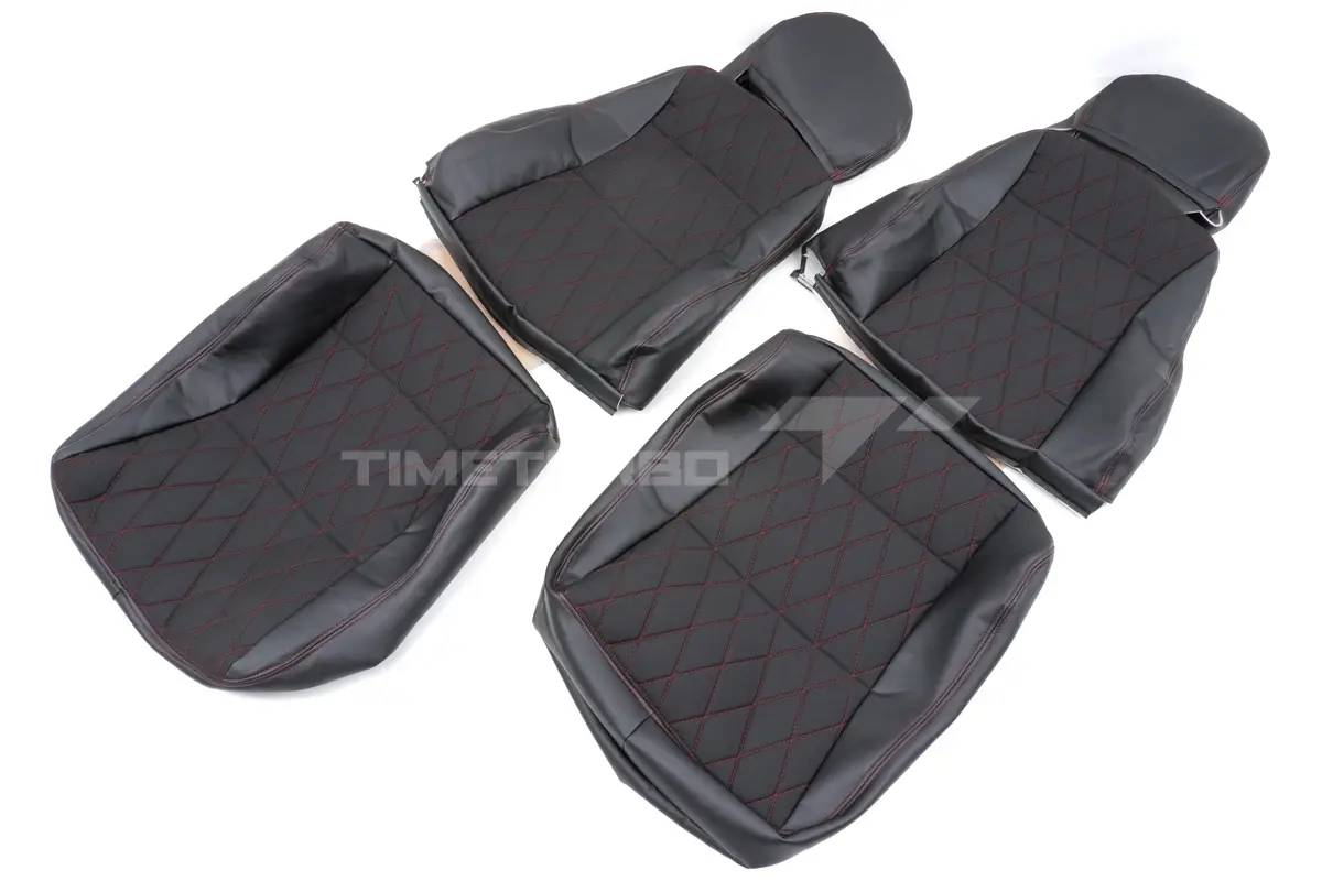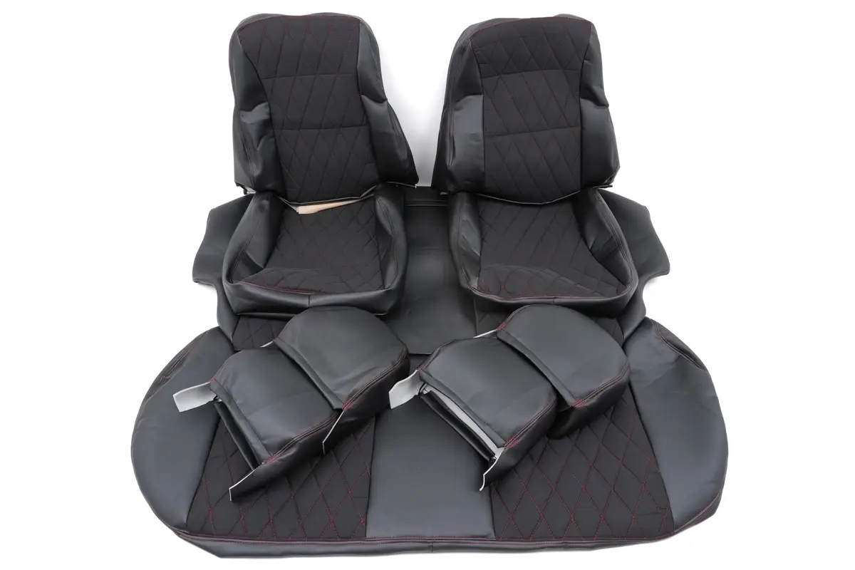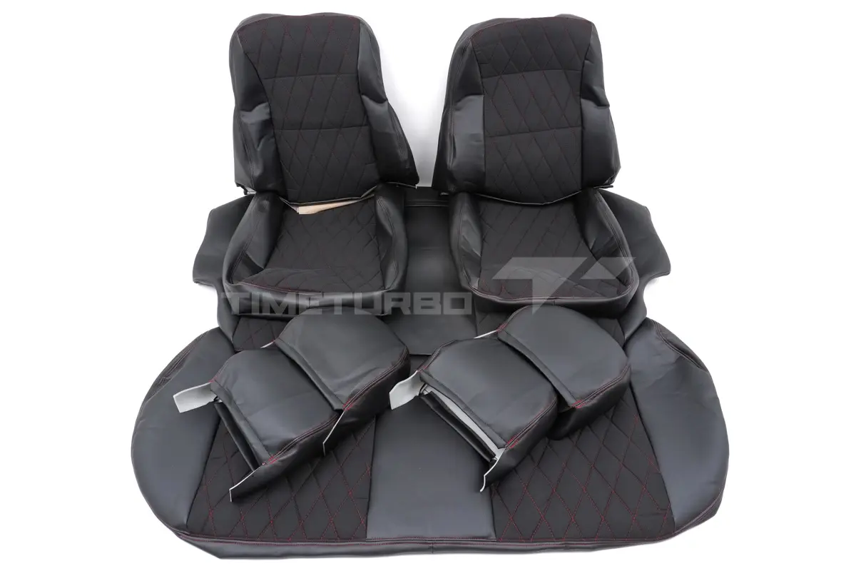 Обивка не чехлы на сиденья экокожа с тканью, Ромб чёрная нить, одинарная строчка для ВАЗ 2108-21099, 2113-2115